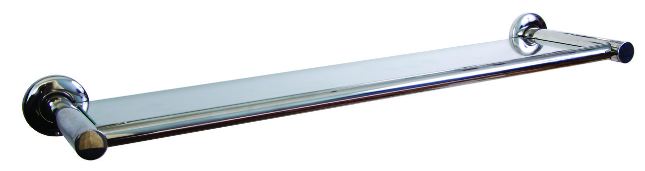 Проста і зручна поличка у ванну Скляна полиця закріплена в металевому обрамленні.